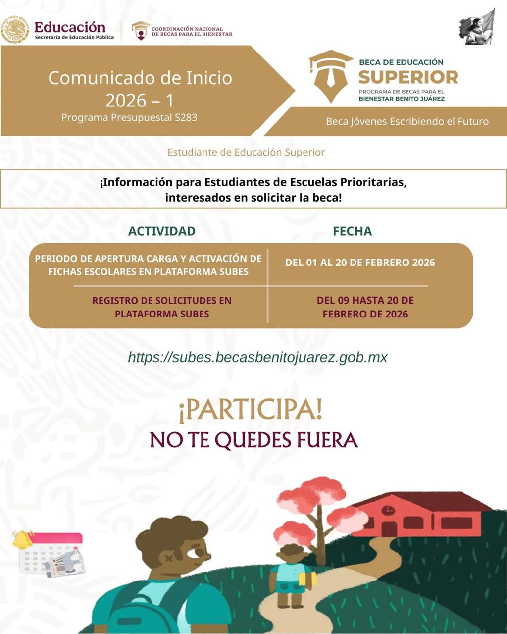 ¡Si eres estudiante de nuevo ingreso, inscrito en una Unidad Académica PRIORITARIA de la Universidad, recuerda que lo primero que deberás realizar será una cuenta en la plataforma SUBES! https://subes.becasbenitojuarez.gob.mx/
