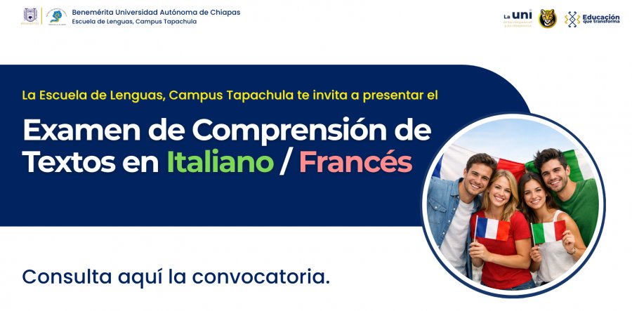 La Escuela de Lenguas, Campus Tapachula, convoca al público en general a presentar el examen de comprensión de textos en francés o italiano